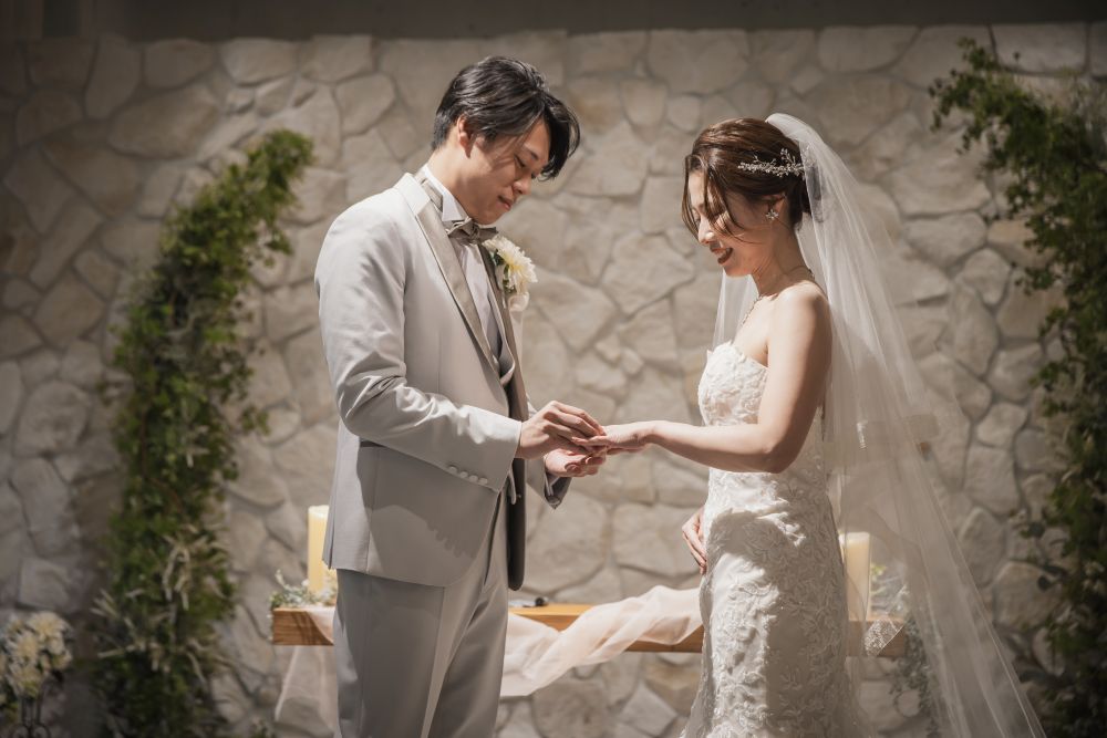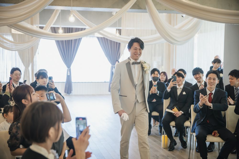 本場で見せるご新郎様のキリリと緊張されたお顔と、ご新婦様の幸せそうな笑顔がとても印象的です。