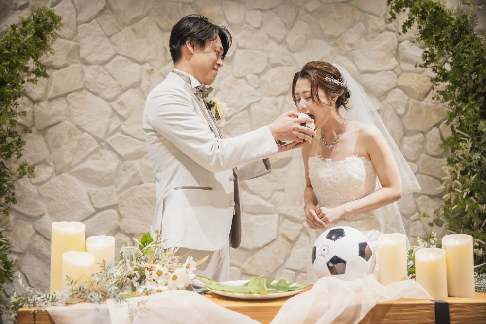 エントランスのおしつらえや挙式の中にはおふたりが大好きな「サッカー」が…幸せの瞬間がそこにありました。