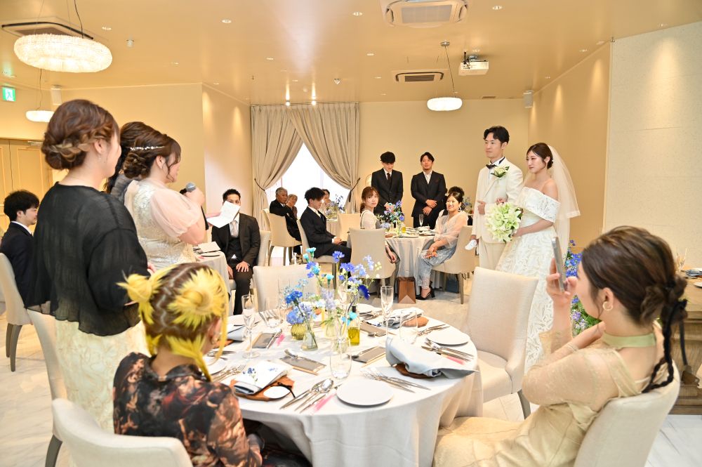 おふたり。ゲスト様からの「おめでとう~」の言葉を受けて