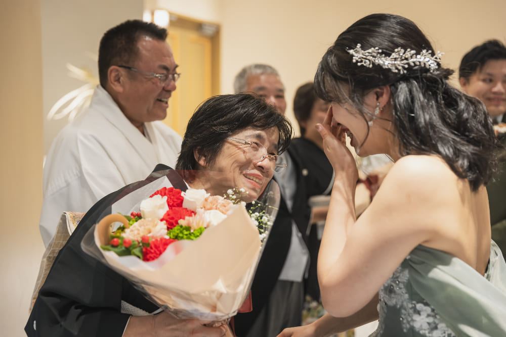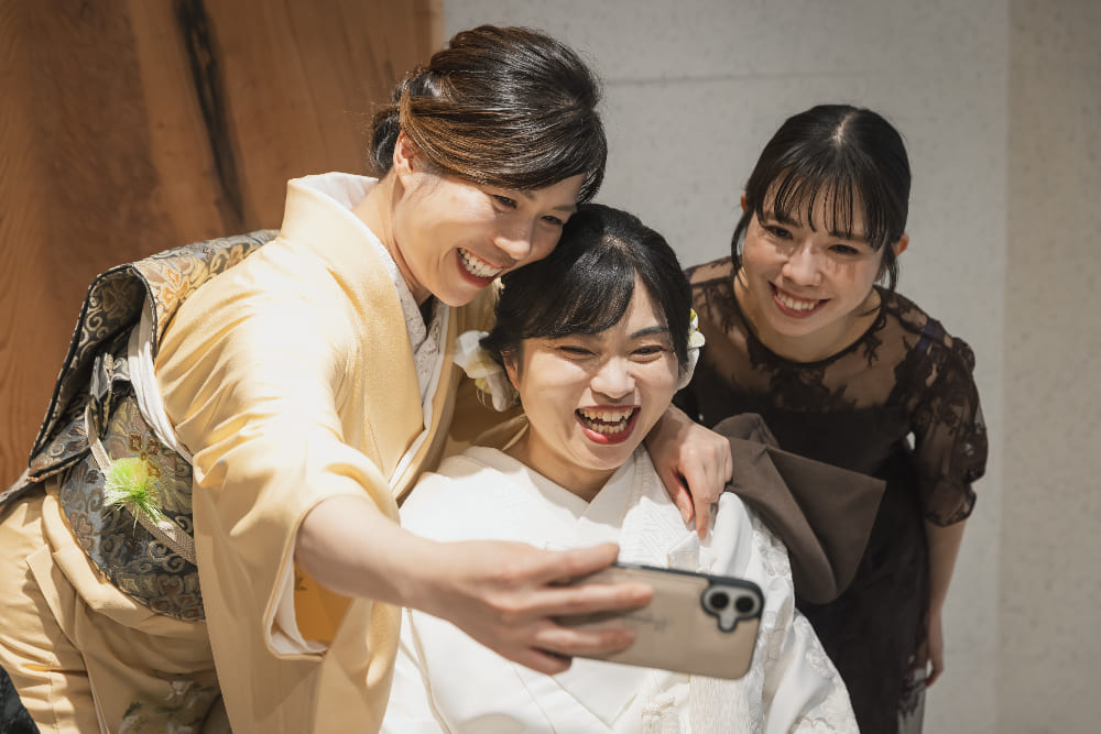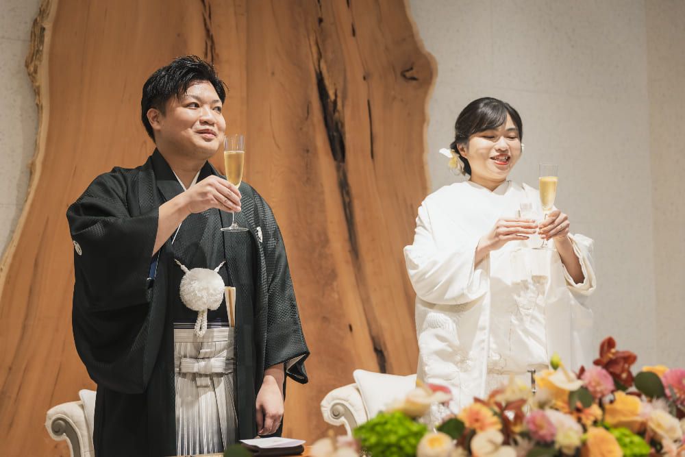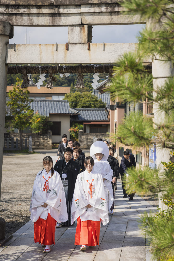 結婚式後のご感想に、“毎回の打合せがとても楽しかった!!”とのお話をいただきました。また“叶えたいことをすべて叶えられました!”ともおっしゃっていただき、本当に安心いたしました。神前結婚式はご親戚が宮司様のお社で、気心知れた皆さまと、温かく幸せな時間を過ごしていただくことができました。ブライダル西陣のプロデュースやアイデンの料理にも大満足とのことで、笑いあり、涙あり、感無量の結婚式となりました!!