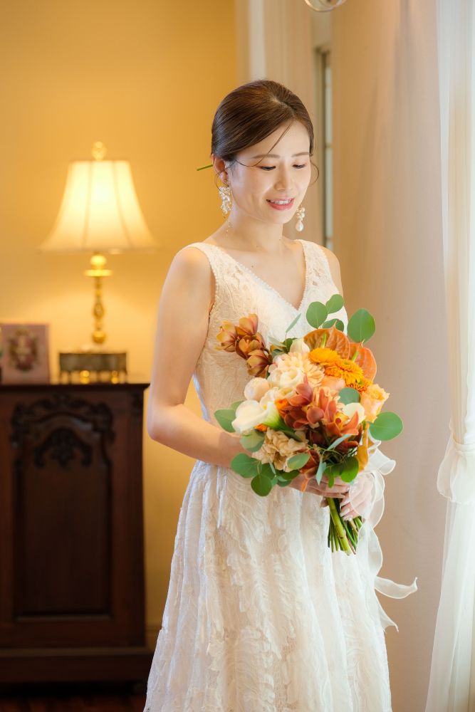 常に笑顔で明るいご新婦様と、撮影の最後のご両親様への贈呈花束のシーンで大粒の涙を流されたご新郎様が