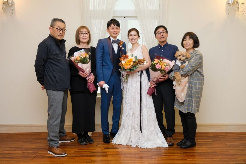 当日はご家族や愛犬に囲まれて和やかに楽しく撮影が進みました。和装・洋装どちらもお召しになり