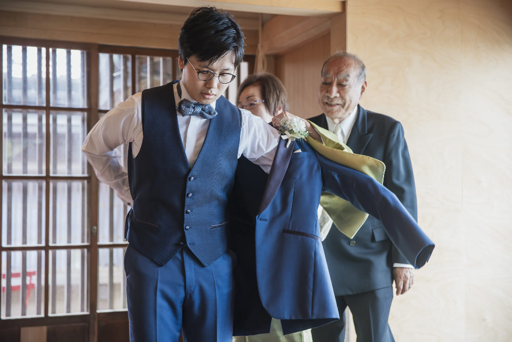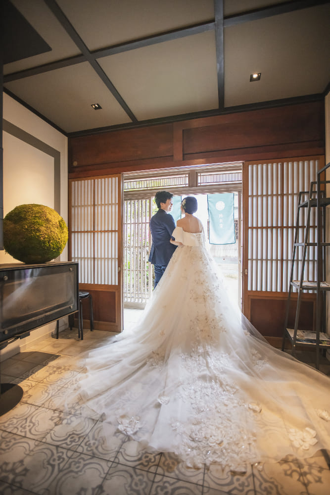 おふたりが選ばれたウェディング会場は坂井市三国町のフレンチレストラン “LULL” 初めて会場見学に訪れた際のソファ席から見た日本海の光景に、「この場所で結婚式を挙げたい!」との想いが固まりました。新郎様の趣味、盆栽とも相性がばっちりの会場は築130年にもなる古民家をモダンにリノベーション。「かしこまらずに美味しいお食事を楽しめる一日に」というコンセプトのもと、大切なご家族やご友人とともに温かく優しい時間を過ごされました。